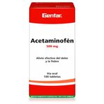 Acetaminofén 500 Mg Caja X 100 Tabletas Genfar. Este producto es un medicamento, no exceder su consumo. Leer indicaciones y contraindicaciones, si los síntomas persisten consultar al médico.