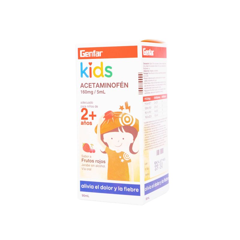 Acetaminofén 160 Mg/5 Ml Jarabe Frasco X 90 Ml Genfar. Este producto es un medicamento, no exceder su consumo. Leer indicaciones y contraindicaciones, si los síntomas persisten consultar al médico.