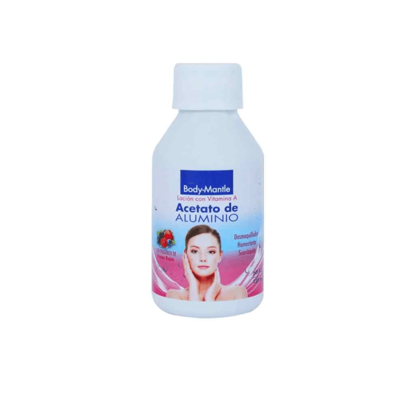 Acetato Aluminio Frutos Rojos Frasco X 120 Ml El Acetato de Aluminio Frutos Rojos está formulado como una solución tópica astringente y refrescante. Contiene acetato de aluminio, conocido por sus propiedades para aliviar la irritación y el picor, combinado con un agradable aroma a frutos rojos para una experiencia sensorial placentera. Se utiliza para el alivio de afecciones cutáneas leves.