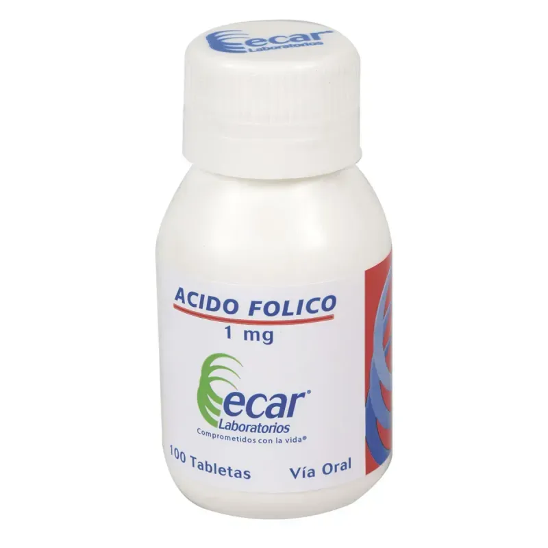 Ácido Fólico 1 Mg Frasco X 100 Tabletas Ecar. Este producto es un medicamento, no exceder su consumo. Leer indicaciones y contraindicaciones, si los síntomas persisten consultar al médico. Venta bajo fórmula médica.