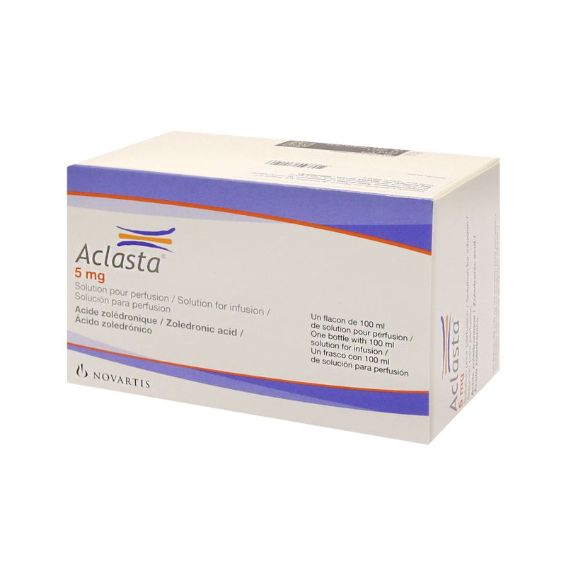 Aclasta Ácido Zoledronico Vial 5 Mg Frasco X 100 Solución Inyectable Pharmalab. Este producto es un medicamento, no exceder su consumo. Leer indicaciones y contraindicaciones, si los síntomas persisten consultar al médico. Venta bajo fórmula médica.