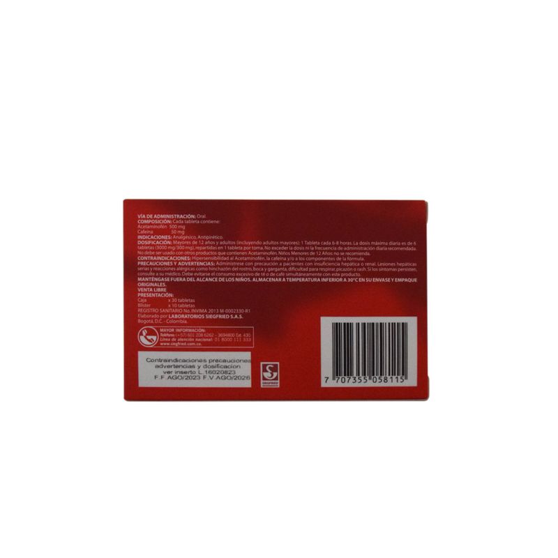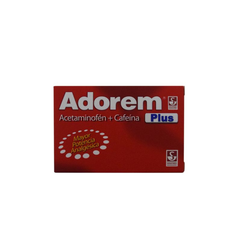 Adorem Plus Acetaminofén + Cafeína 500 Mg/5 Ml Caja X 10 Tabletas Siegfried. Este producto es un medicamento, no exceder su consumo. Leer indicaciones y contraindicaciones, si los síntomas persisten consultar al médico.
