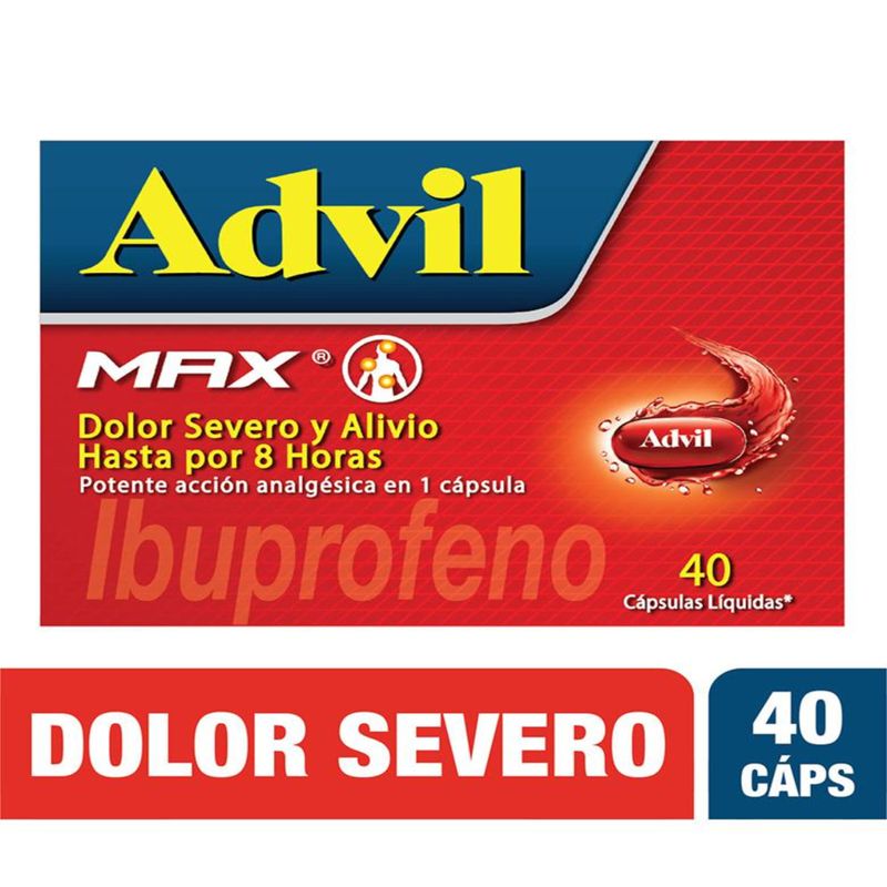 Advil Max Caja X 40 Cápsulas Gsk. Este producto es un medicamento, no exceder su consumo. Leer indicaciones y contraindicaciones, si los síntomas persisten consultar al médico.