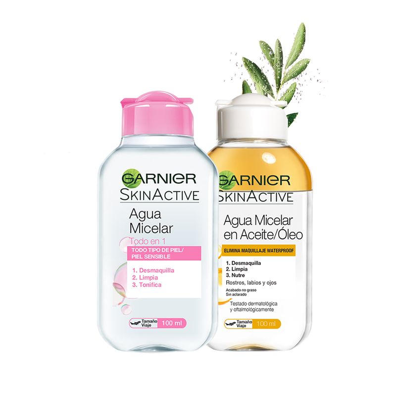 Agua Micelar Bifasica Garnier 100Ml. Agua micelar bifásica que elimina incluso el maquillaje waterproof.