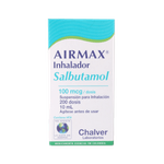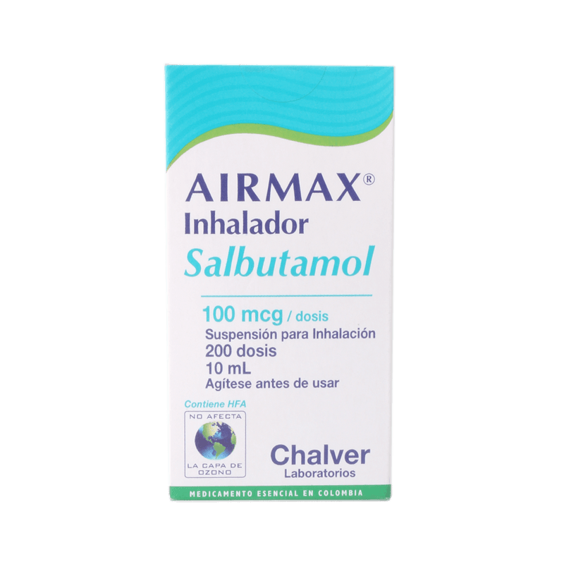 Airmax Salbutamol 100 Mcg /200 Mg Frasco X 200 Dosis Solución Inhalar Chalver. Este producto es un medicamento, no exceder su consumo. Leer indicaciones y contraindicaciones, si los síntomas persisten consultar al médico. Venta bajo fórmula médica.