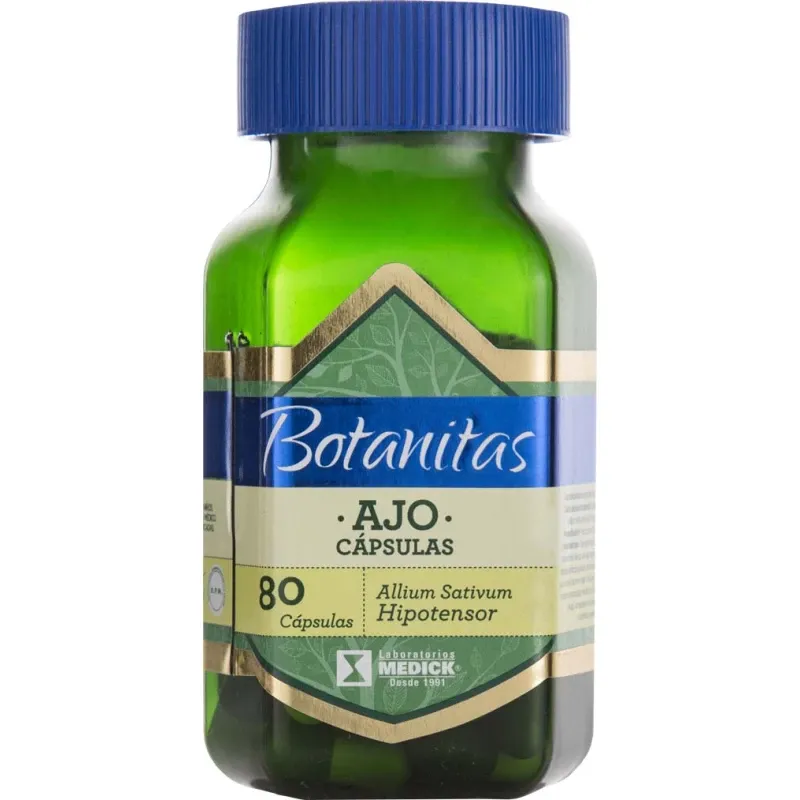 Ajo Frasco X 80 Cápsulas Medick. Este producto no sirve para el tratamiento, cura oprevención de alguna enfermedad. Este producto es un suplemento dietario, no es un medicamento y no suple una alimentación equilibraba.