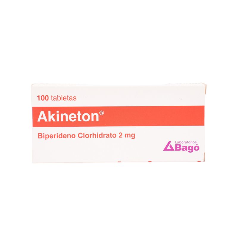 Akineton Biperideno Clorhidrato 2 Mg Caja X 100 Tabletas Bago. Este producto es un medicamento, no exceder su consumo. Leer indicaciones y contraindicaciones, si los síntomas persisten consultar al médico. Venta bajo fórmula médica.