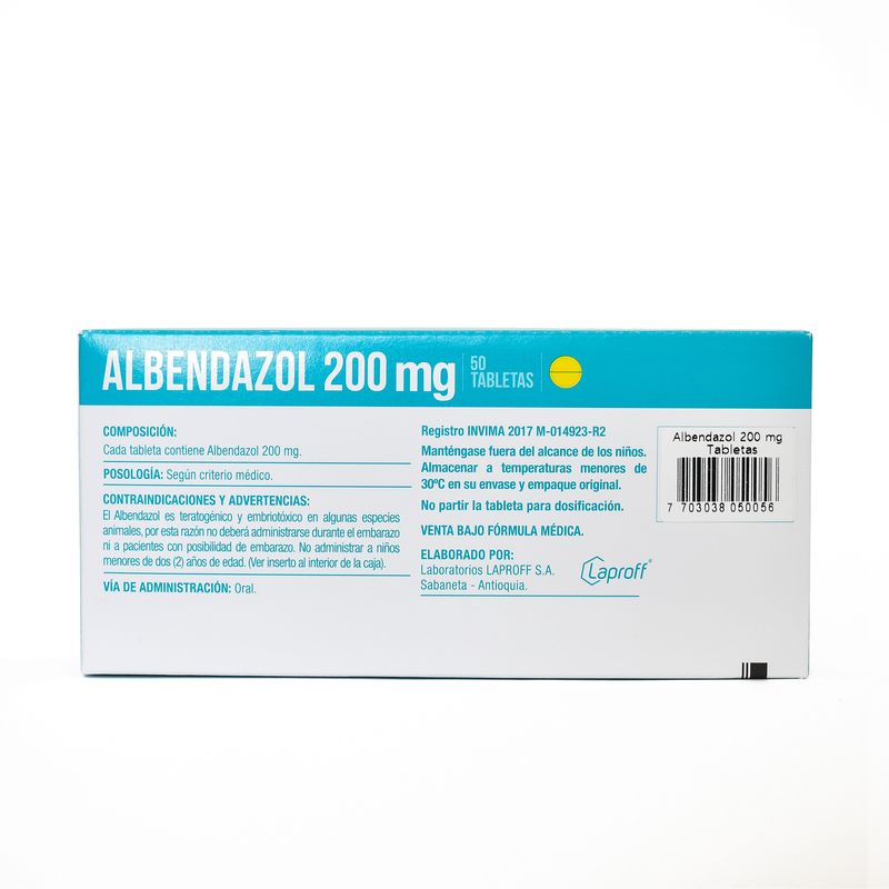 Albendazol 200 Mg Caja X 50 Tabletas Laproff