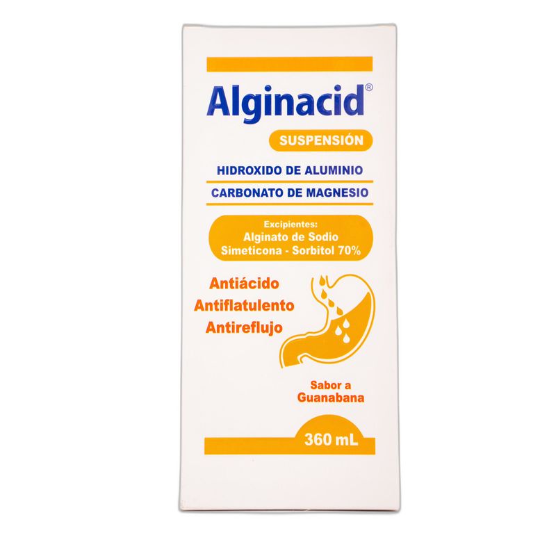 Alginacid Frasco X 360 Ml Suspensión Oral Labquifar. Este producto es un medicamento, no exceder su consumo. Leer indicaciones y contraindicaciones, si los síntomas persisten consultar al médico.