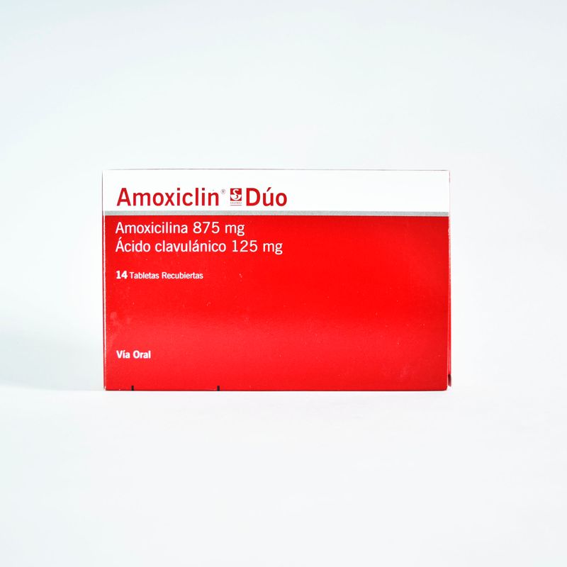 Amoxiclin Duo Amoxicilina Ácido Clavulanico 875 Mg/125 Mg Caja X 14 Tabletas Siegfried. Este producto es un medicamento, no exceder su consumo. Leer indicaciones y contraindicaciones, si los síntomas persisten consultar al médico. Venta bajo fórmula médica.