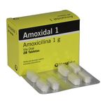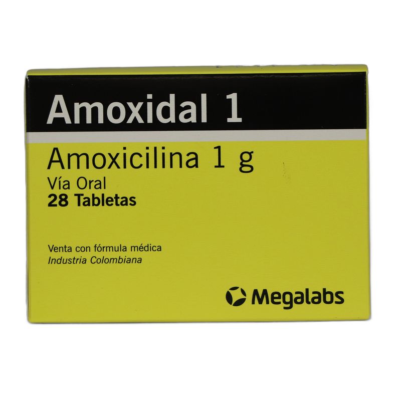 Amoxidal Amoxicilina 1 Gr Caja X 28 Tabletas Megalabs. Este producto es un medicamento, no exceder su consumo. Leer indicaciones y contraindicaciones, si los síntomas persisten consultar al médico. Venta bajo fórmula médica.
