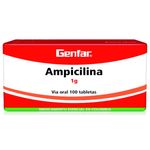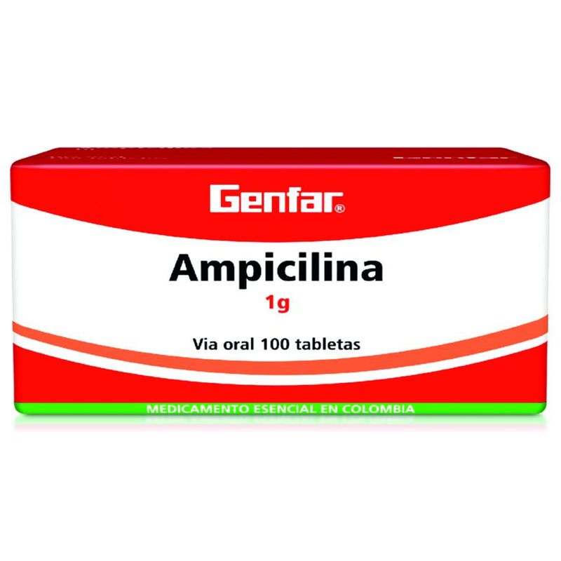 Ampicilina 1 Gr Caja X 100 Tabletas Genfar. Este producto es un medicamento, no exceder su consumo. Leer indicaciones y contraindicaciones, si los síntomas persisten consultar al médico. Venta bajo fórmula médica.