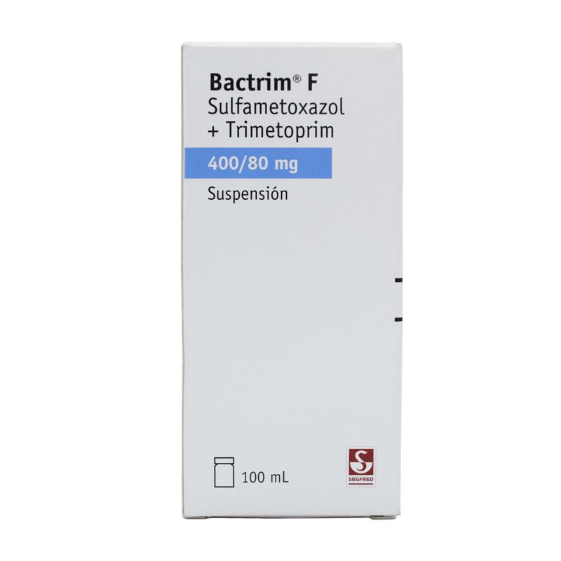 Bactrim F Sulfametoxazol Trimetoprim 400 Gr /80 Gr Frasco X 100 Ml Frasco X Siegfried. Este producto es un medicamento, no exceder su consumo. Leer indicaciones y contraindicaciones, si los síntomas persisten consultar al médico. Venta bajo fórmula médica.