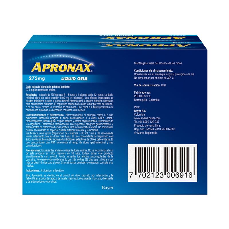 Apronax Naproxeno Sódico 550 Mg Pague 14 Lleve 16 Bayer