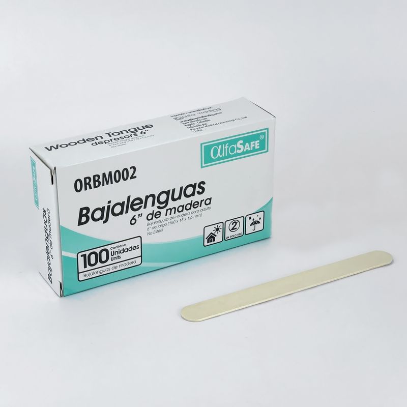 Bajalenguas de Madera, en su caja de 100 unidades de Alfa, son instrumentos de un solo uso utilizados para examinar la boca y la garganta. Su material de madera es seguro y no irritante, y su diseño facilita la exploración.
