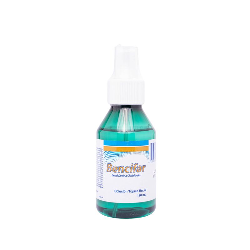 Bencifar Bencidamina Clorhidrato 150Mg Tópica Bucal Frasco X 120 Ml Solución Tridex. Este producto es un medicamento, no exceder su consumo. Leer indicaciones y contraindicaciones, si los síntomas persisten consultar al médico.
