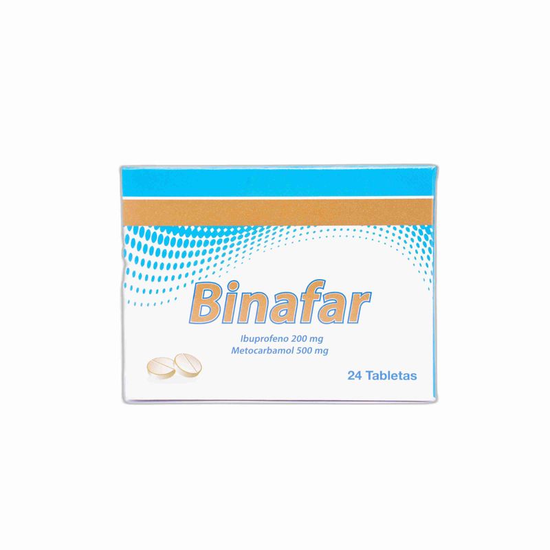 Binafar Ibuprofeno Metocarbamol 500Gr/200Gr Caja X 24 Tabletas Tridex. Este producto es un medicamento, no exceder su consumo. Leer indicaciones y contraindicaciones, si los síntomas persisten consultar al médico. Venta bajo fórmula médica.
