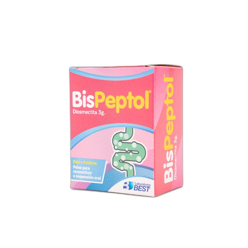 Bispeptol Diosmectita 3 Gr Caja X 9 Sobres Polvo Best. Este producto es un medicamento, no exceder su consumo. Leer indicaciones y contraindicaciones, si los síntomas persisten consultar al médico. Venta bajo fórmula médica.