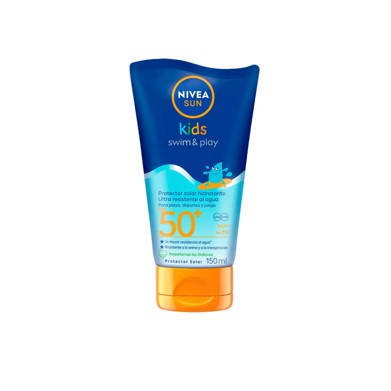 Bloqueador Nivea Kids Swim & Play FPS 50 200 ml es un protector solar de la marca Nivea, específicamente diseñado para niños y perteneciente a su línea Swim & Play. Tiene un factor de protección solar (FPS) de 50, lo que indica una alta protección contra los rayos UVB. Su presentación de 200 ml es ideal para el uso frecuente en niños.