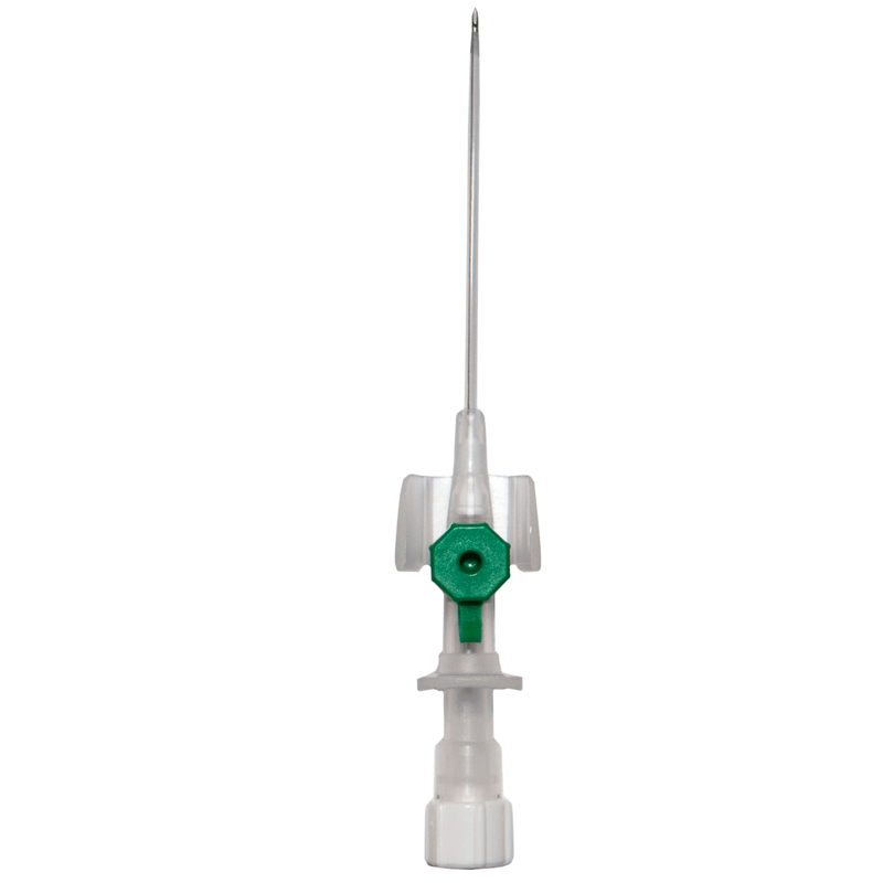 Catéter intravenoso de 18G, 1.3 x 32 cm, diseñado para la administración de líquidos y medicamentos. Su diseño permite una inserción fácil y segura.