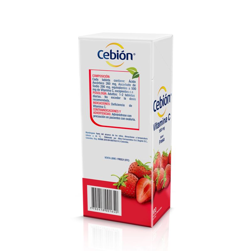 Mantén tus defensas activas con Cebion Fresa en su caja de 100 tabletas masticables. Su delicioso sabor a fresa las hace ideales para toda la familia, aportando la Vitamina C necesaria para el funcionamiento óptimo del sistema inmune y la salud de la piel.