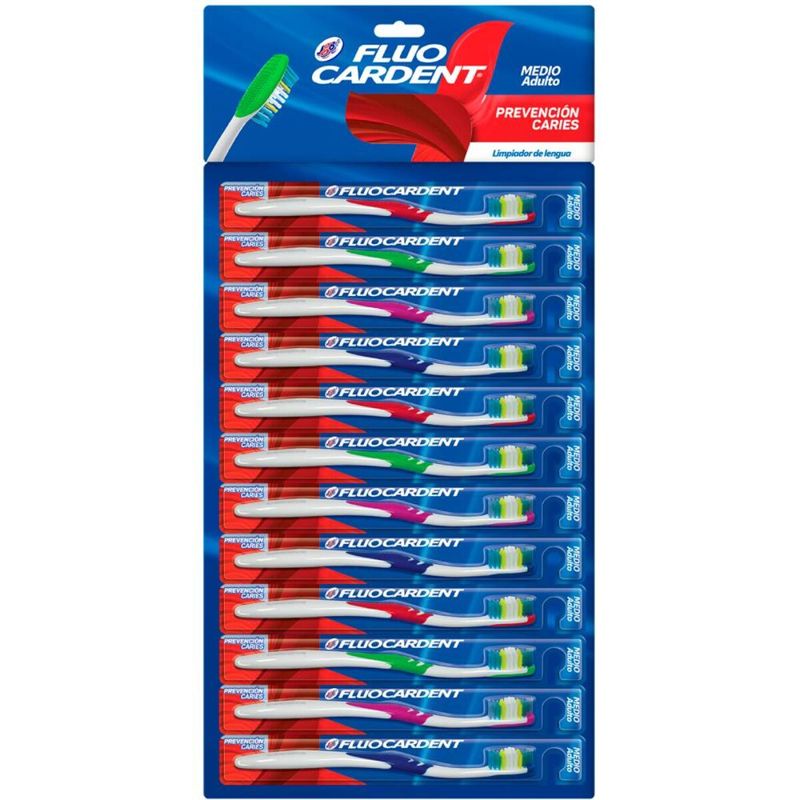 Cepillo Dental Fluocardent Prevencion Caries Display 12 Unds. Cepillo diseñado para prevenir caries, ideal para toda la familia.