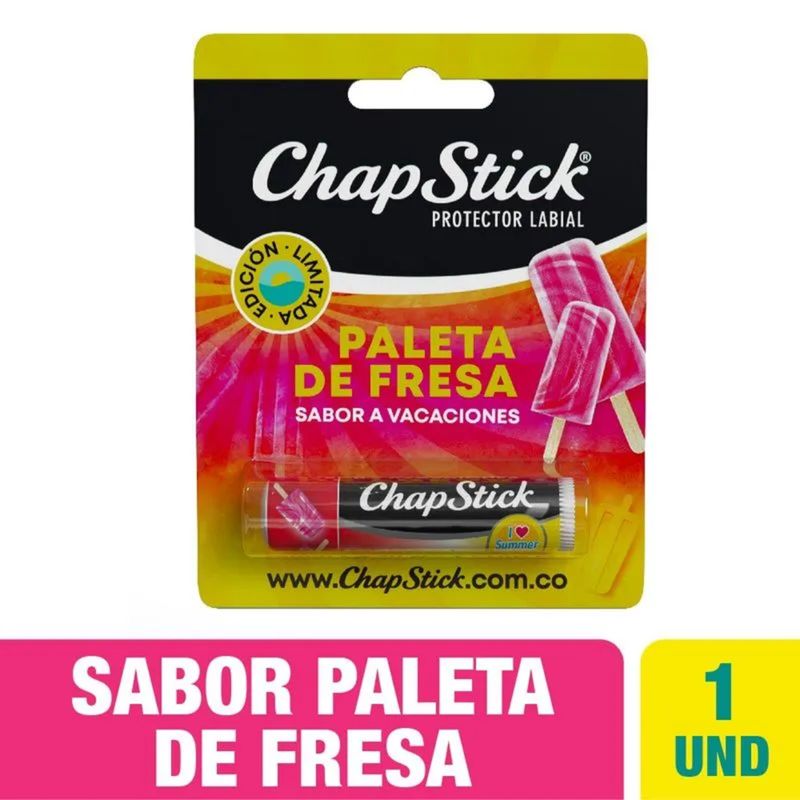 Chap Stick Paleta Fresa Unidad Gsk. Hidrata Protege y repara labios resecos y agrietados.