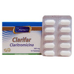 Clarifar Claritromicina 500 Mg Caja X 10 Tabletas Tridex. Este producto es un medicamento, no exceder su consumo. Leer indicaciones y contraindicaciones, si los síntomas persisten consultar al médico. Venta bajo fórmula médica.