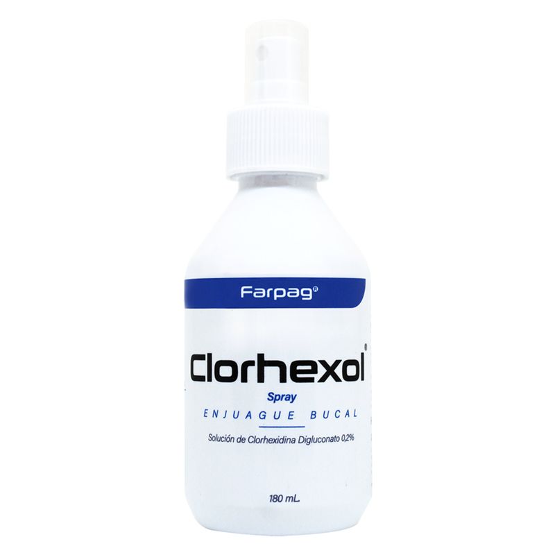 Clorhexol 0,2% Spray Frasco 180 Ml. Spray bucal con clorhexidina, ayuda a combatir bacterias y mantener la higiene.