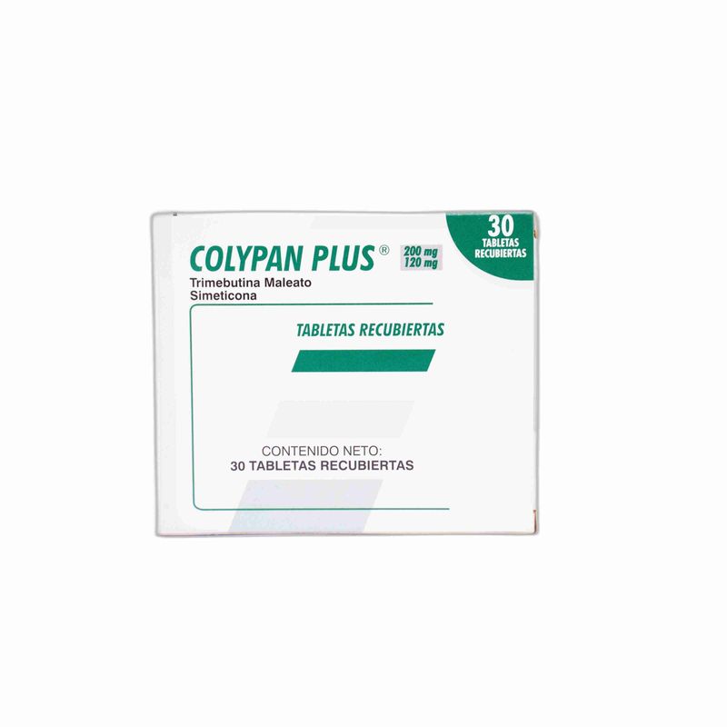 Colypan Plus Simeticona Trimebutina Maleato 200/120 Mg Caja X 30 Tabletas Farma De Colombia. Este producto es un medicamento, no exceder su consumo. Leer indicaciones y contraindicaciones, si los síntomas persisten consultar al médico. Venta bajo fórmula médica.