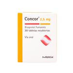 Concor Bisoprolol Fumarato 2.5 Mg Caja X 30 Tabletas Merck. Este producto es un medicamento, no exceder su consumo. Leer indicaciones y contraindicaciones, si los síntomas persisten consultar al médico. Venta bajo fórmula médica.