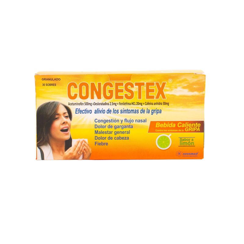 Congestex Gripa Caja X 30 Sobres Granulado Novamed. Este producto es un medicamento, no exceder su consumo. Leer indicaciones y contraindicaciones, si los síntomas persisten consultar al médico.