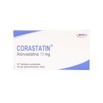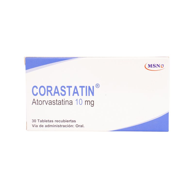 Corastatin Atorvastatina Cálcica 10 Mg Caja X 30 Tabletas Msn Labs. Este producto es un medicamento, no exceder su consumo. Leer indicaciones y contraindicaciones, si los síntomas persisten consultar al médico. Venta bajo fórmula médica.