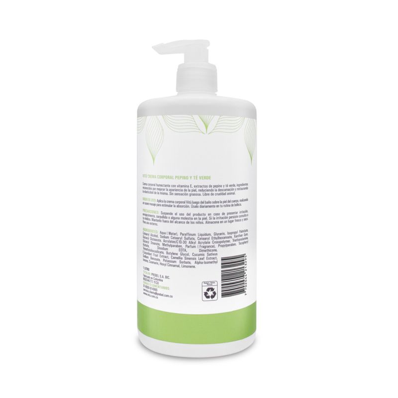 Crema Vitu Corporal Pepino Te Verde Unidad. Crema refrescante que nutre la piel con extracto de pepino