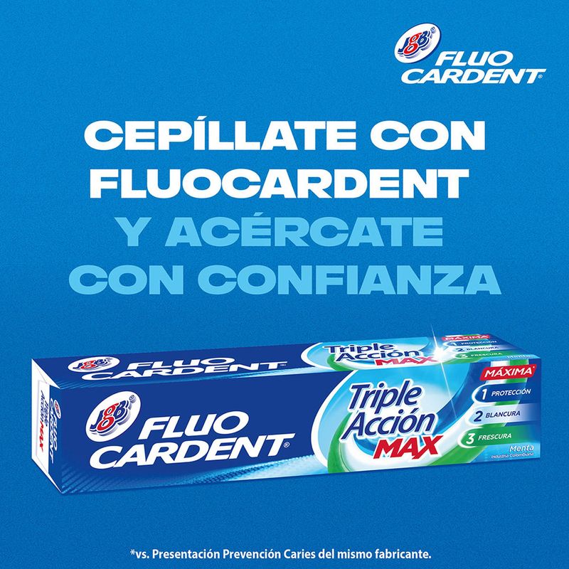 Crema Dental Fluocardent Multiacción Frescura Max Tubo 75 Ml. Crema dental que proporciona frescura y limpieza eficaz.