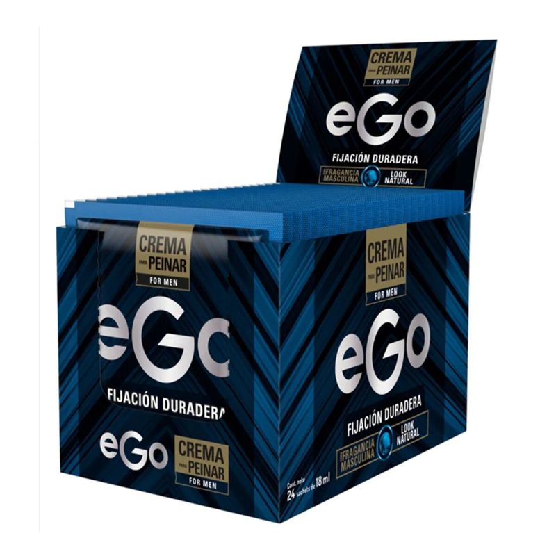 Crema Para Peinar Ego For Men 18ml X 24 Sachets Unilever La Crema Para Peinar Ego For Men está formulada para dar forma y fijación al cabello masculino. Su fórmula proporciona control y definición sin dejar residuos pegajosos. Su presentación en 24 sachets individuales de 18 ml es ideal para llevar de viaje o para probar el producto.
