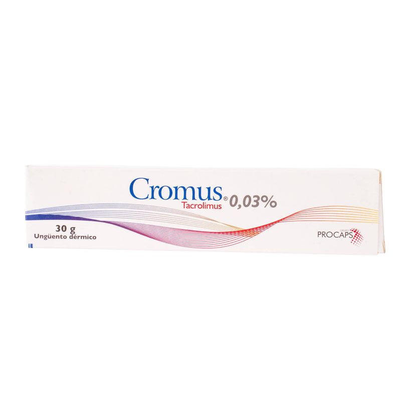 Cromus Tacrolimus Monohidrato 0.03% Tubo X 30 Gr Unguento Tópico Procaps. Este producto es un medicamento, no exceder su consumo. Leer indicaciones y contraindicaciones, si los síntomas persisten consultar al médico.