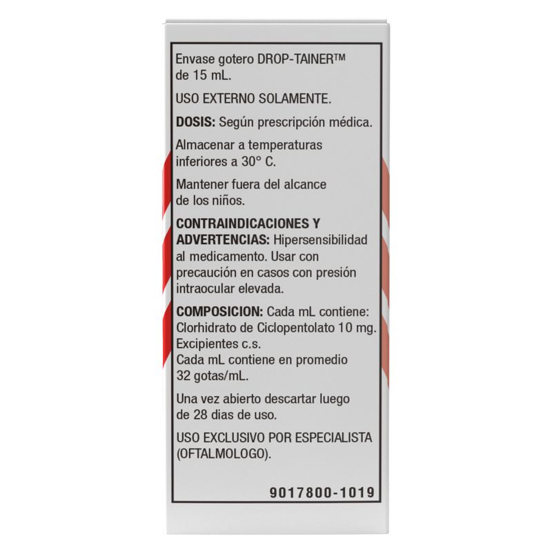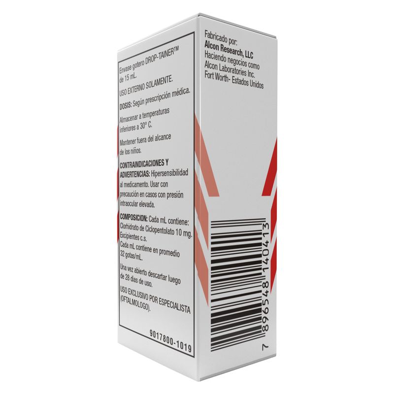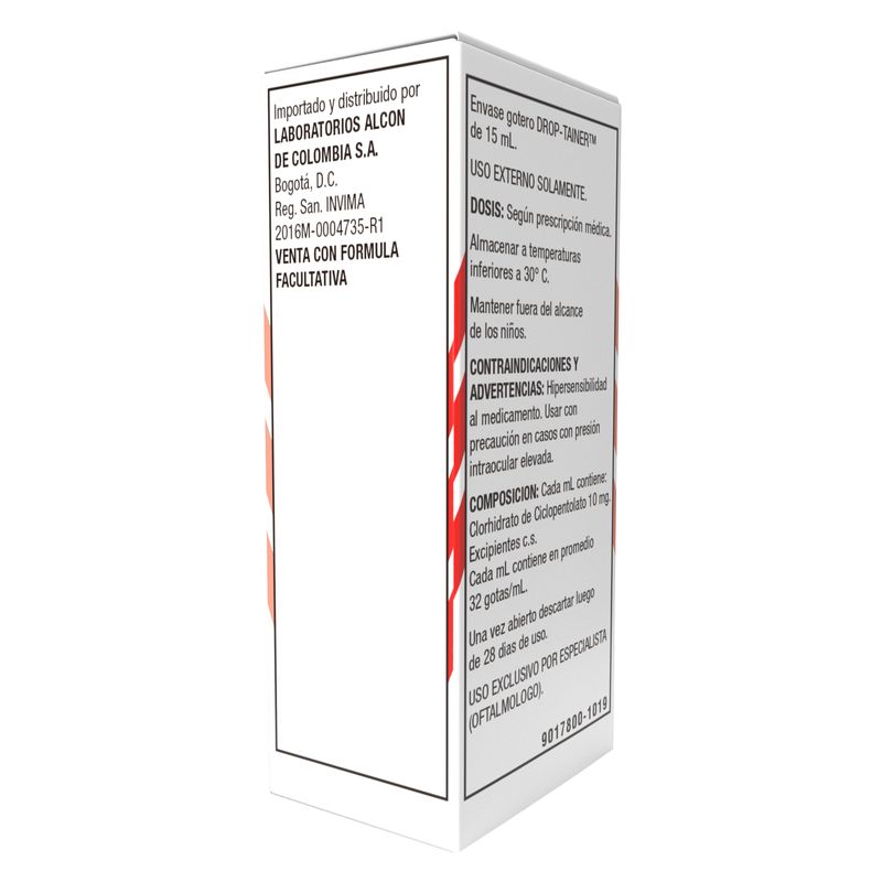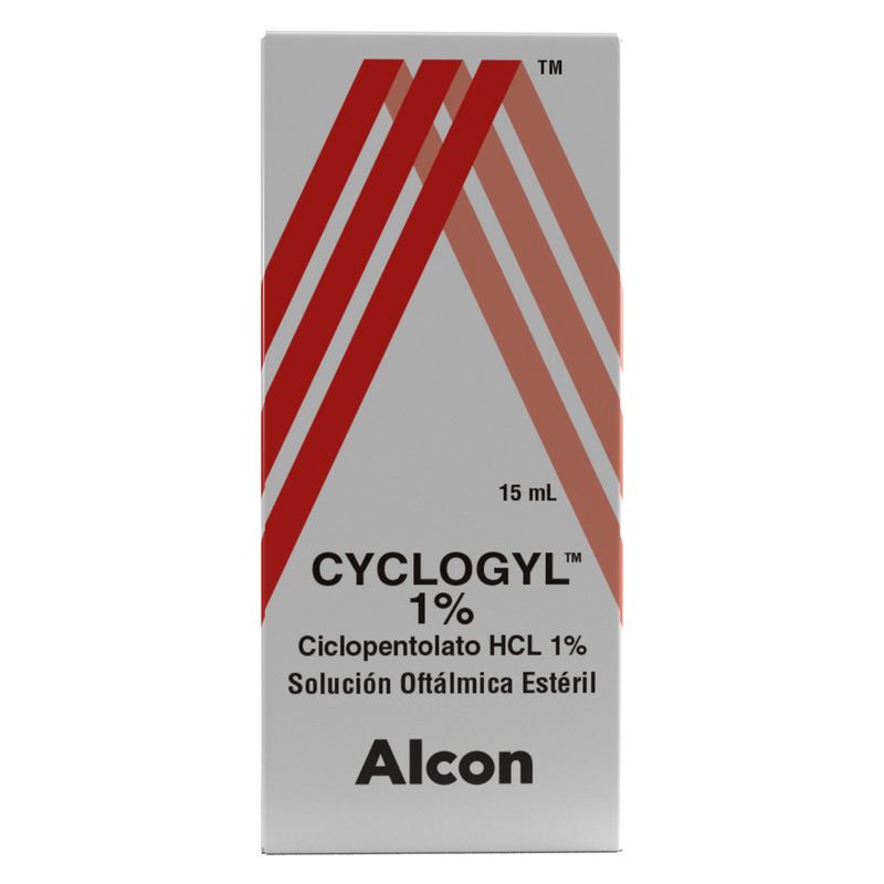 Cyclogyl Solución Oftálmica Ciclopentolato 1% Frasco X 15 Ml Gotas Alcon. Este producto es un medicamento, no exceder su consumo. Leer indicaciones y contraindicaciones, si los síntomas persisten consultar al médico. Venta bajo fórmula médica.