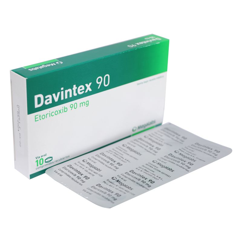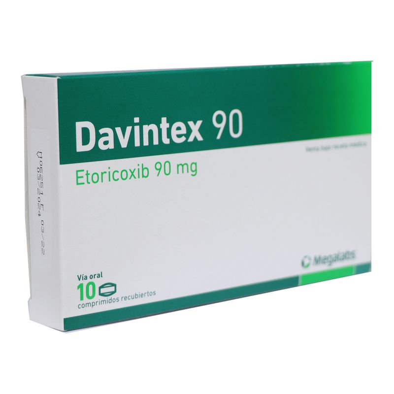 Davintex Etoricoxib 90 Mg Caja X 10 Comprimidos Megalabs. Este producto es un medicamento, no exceder su consumo. Leer indicaciones y contraindicaciones, si los síntomas persisten consultar al médico. Venta bajo fórmula médica.