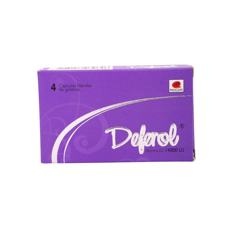 Deferol 14000 Ui Caja X 4 Cápsulas Blanda Procaps. Este producto es un medicamento, no exceder su consumo. Leer indicaciones y contraindicaciones, si los síntomas persisten consultar al médico. Venta bajo fórmula médica.