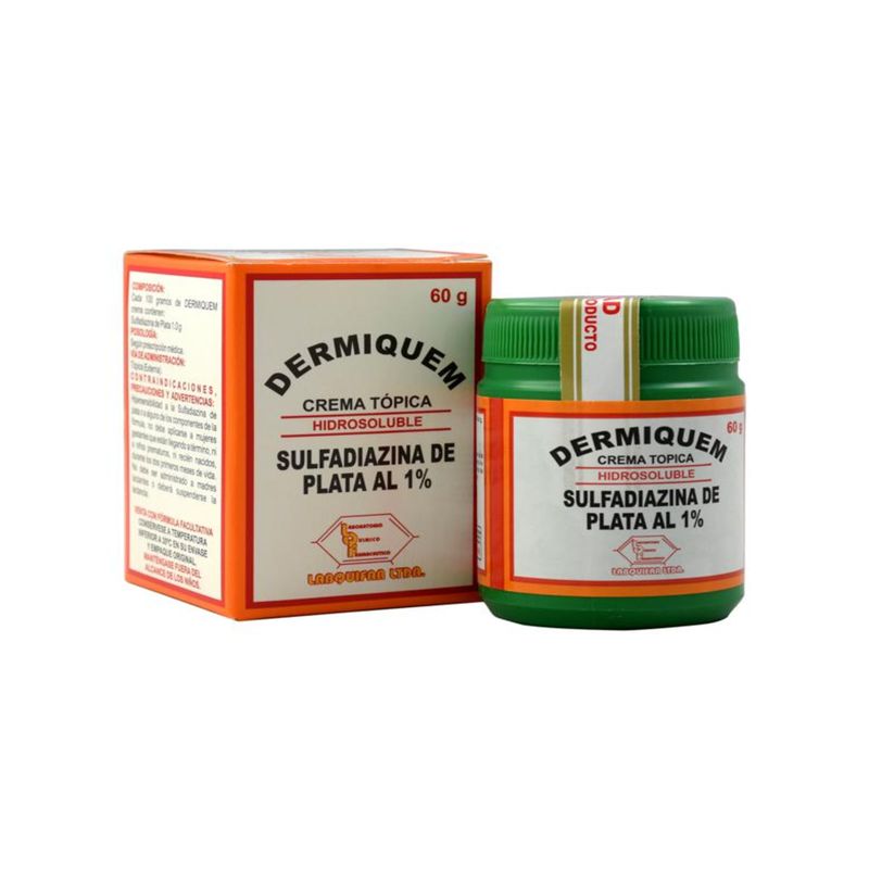 Dermiquem Sulfadiazina Plata 1% Frasco X 60 Gr Crema Tópica Labquifar. Este producto es un medicamento, no exceder su consumo. Leer indicaciones y contraindicaciones, si los síntomas persisten consultar al médico. Venta bajo fórmula médica.