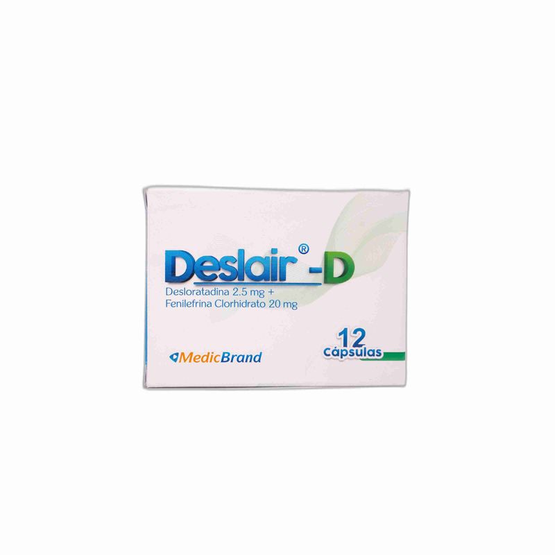 Deslair D Desloratadina 2.5 Mg Fenilefrina Clorhidrato 20 Mg Caja X 12 Cápsulas Coaspharma. Este producto es un medicamento, no exceder su consumo. Leer indicaciones y contraindicaciones, si los síntomas persisten consultar al médico. Venta bajo fórmula médica.