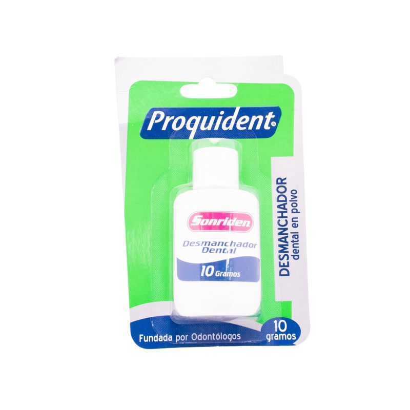 Desmanchador dental en polvo Proquident en frasco de 10 g, ideal para eliminar manchas en los dientes y mantener una sonrisa brillante.