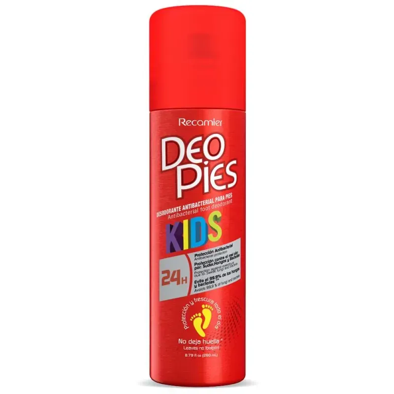 Desodorante Deo Pies Kids Spray 260 Ml Recamier. Perfecto para todas aquellas personas que no desean que la transpiración ni el mal olor las detengan. Para que te sientas protegido y te muevas con confianza durante todo el día.