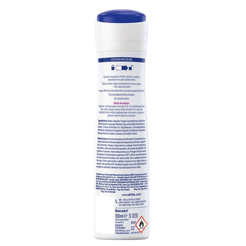 El Desodorante Nivea Aerosol Aclarado Satin 150 ml de BDF es un