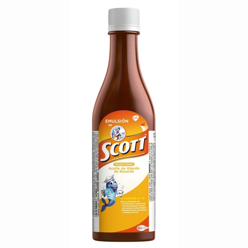 Emulsion Scott Frasco X 180Ml Gsk. Este producto es un medicamento, no exceder su consumo. Leer indicaciones y contraindicaciones, si los síntomas persisten consultar al médico.