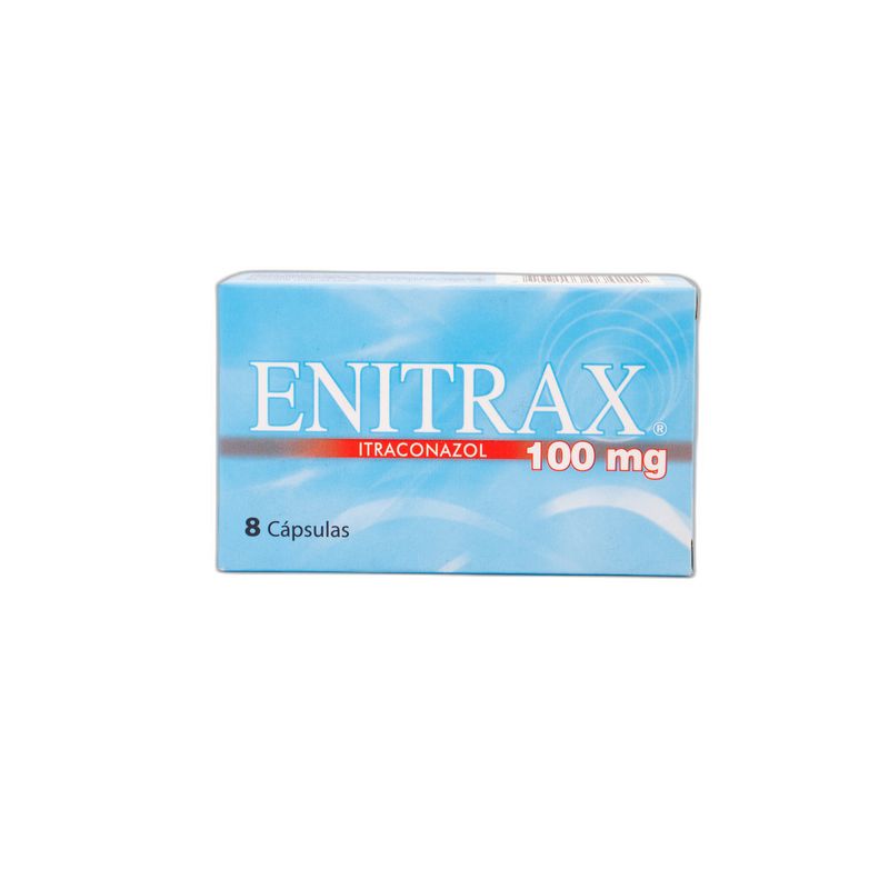 Enitrax Dc Itraconazol 100 Mg Caja X 8 Cápsulas Procaps. Este producto es un medicamento, no exceder su consumo. Leer indicaciones y contraindicaciones, si los síntomas persisten consultar al médico. Venta bajo fórmula médica.
