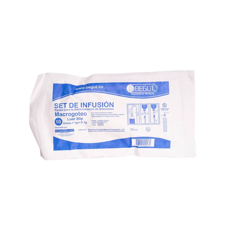 Equipo de macrogoteo, sin aguja, ideal para administración de líquidos.