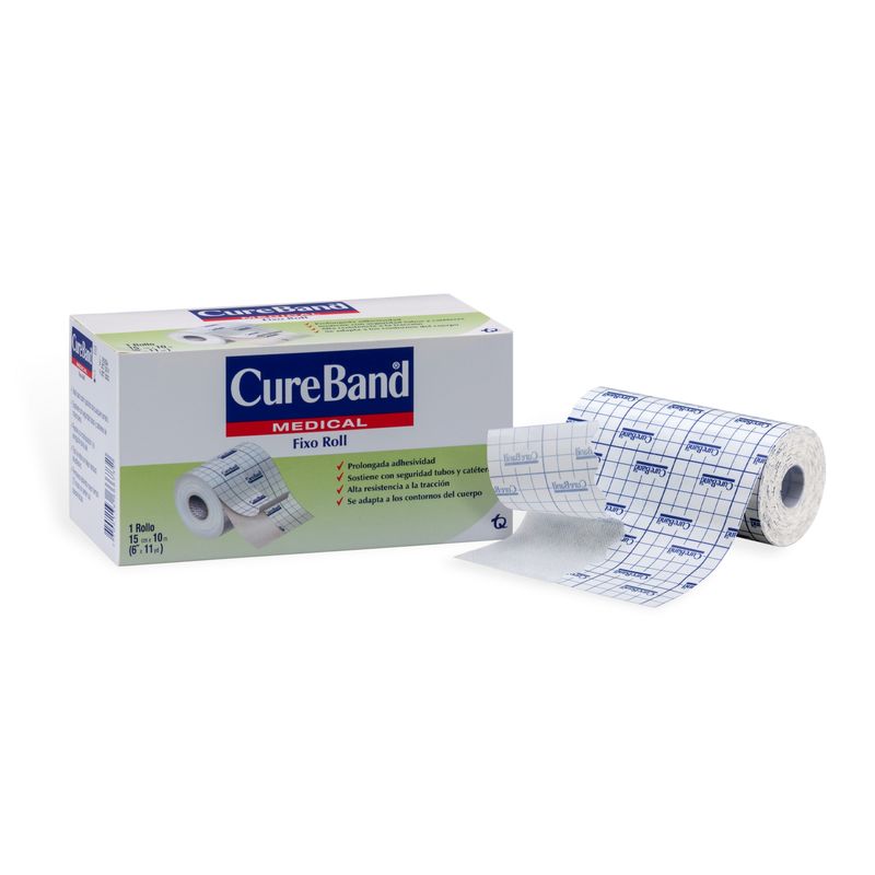 Esparadrapo Cureband Fixo de 15 cm x 10.11 yardas, ideal para uso clínico y doméstico. Su diseño permite una aplicación fácil y efectiva.