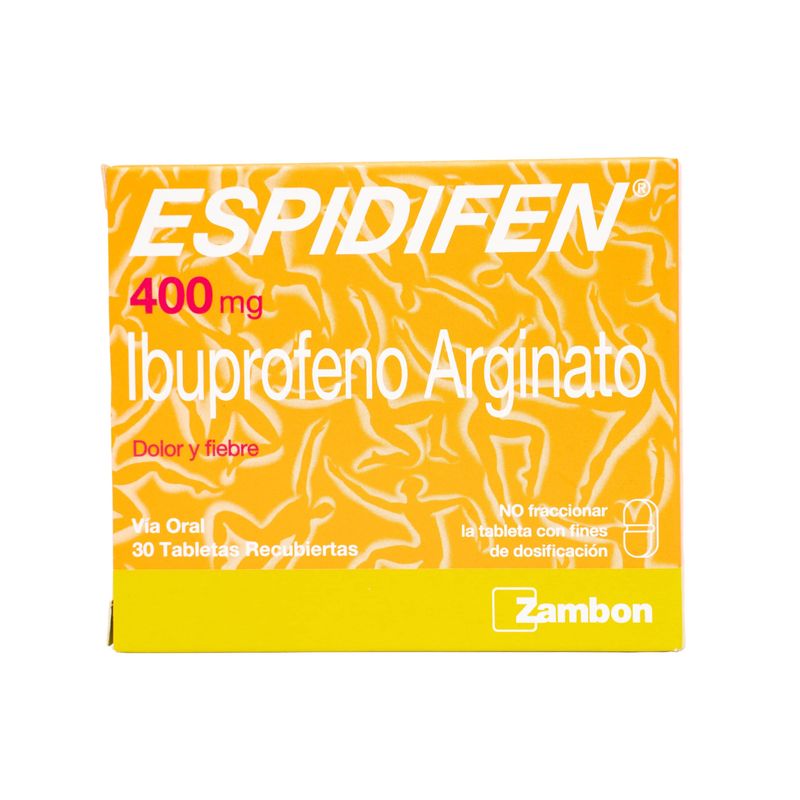 Espidifen Ibuprofeno 400 Mg Caja X 30 Tabletas Zambon. Este producto es un medicamento, no exceder su consumo. Leer indicaciones y contraindicaciones, si los síntomas persisten consultar al médico. Venta bajo fórmula médica.